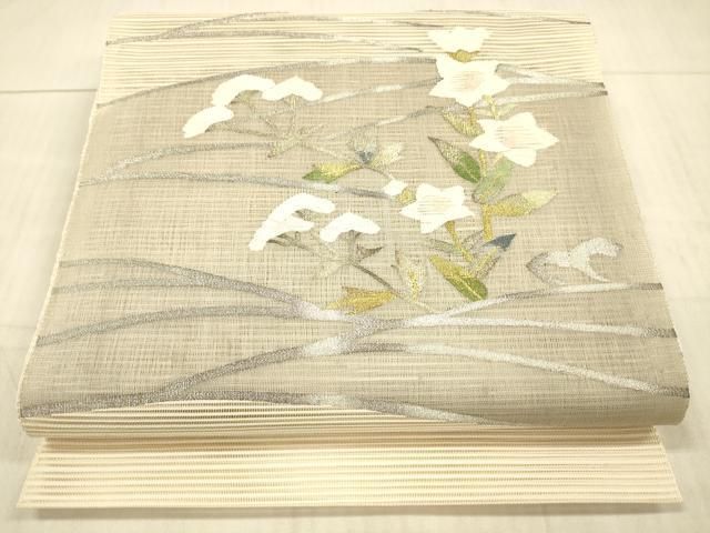 平和屋着物 夏物 絽綴れ 八寸名古屋帯 草花文 金銀糸 正絹 cm