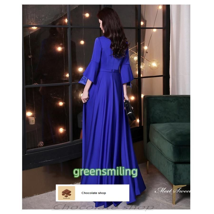 カラードレス ロングドレス パーティードレス ロイヤルブルー Vネック 青 ウェディングドレス ウエディングドレス 結婚式 二次会 花嫁 前撮WP数量 価格926