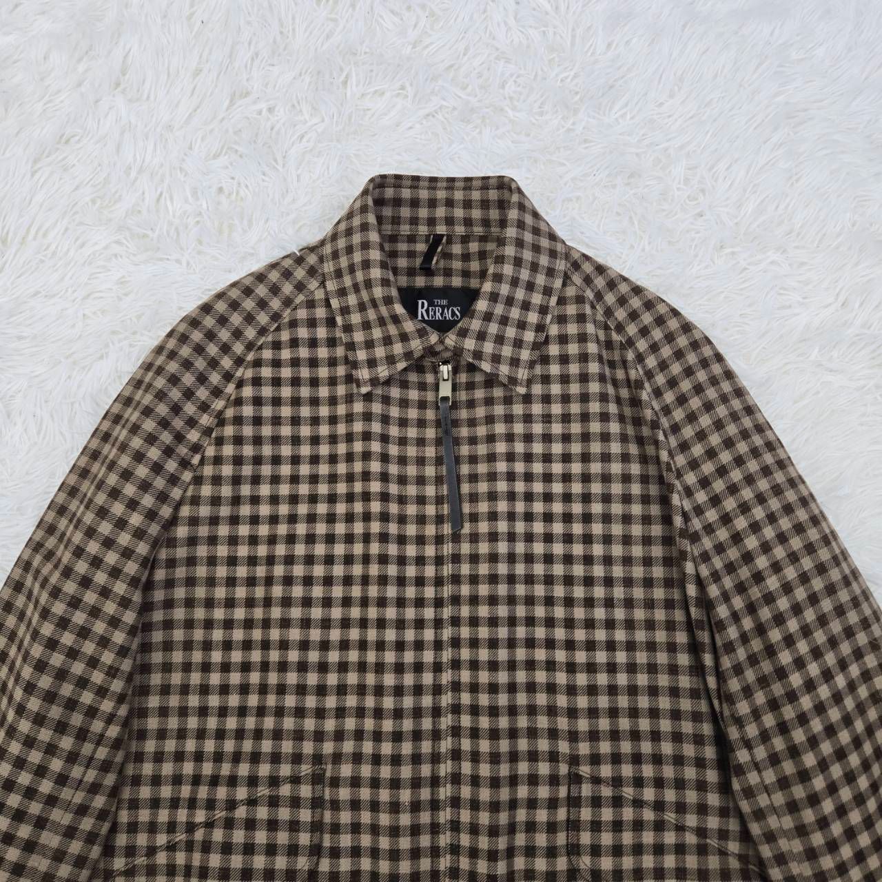 THE RERACS ザ リラクス スイングトップ ハリントンジャケット ガンクラブチェック リネン混 ジップアップ ブルゾン 20 SS ブラウン 48 Lサイズ相当