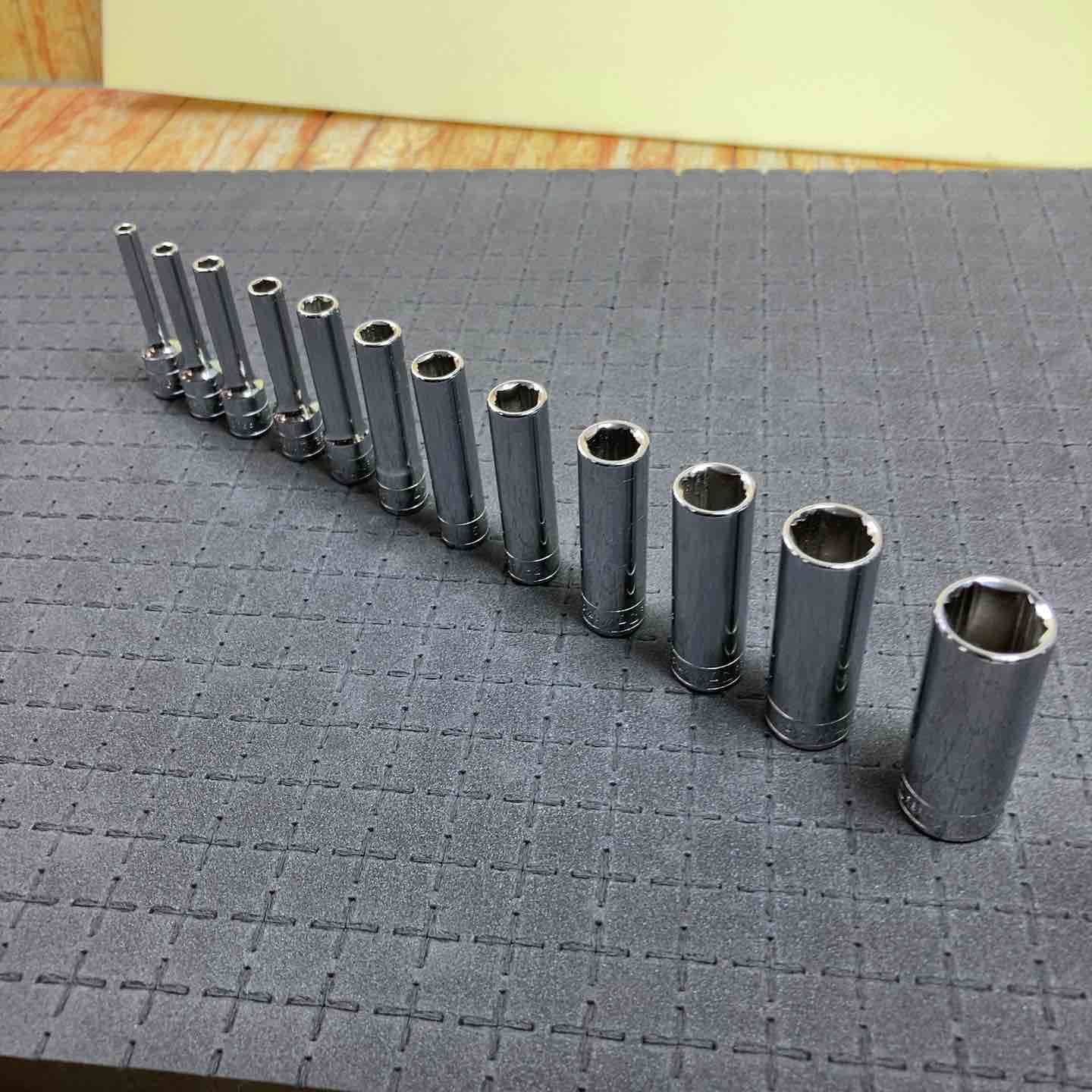 ソケットサイズ:1/8、5/32、3/16、7/32、1/4、9/32、5/16、11/32、3/8、7/16、1/2、9/16