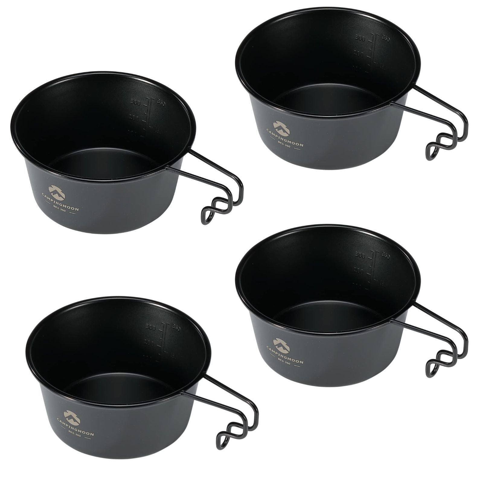 Size 4点_Color 4点 ブラック キャンピングムーン CAMPING MOON キャンプ用 コップ ステンレス シェラカップ 黒 深型 黒シェラ 360 ml 4点セット BKS 4 P