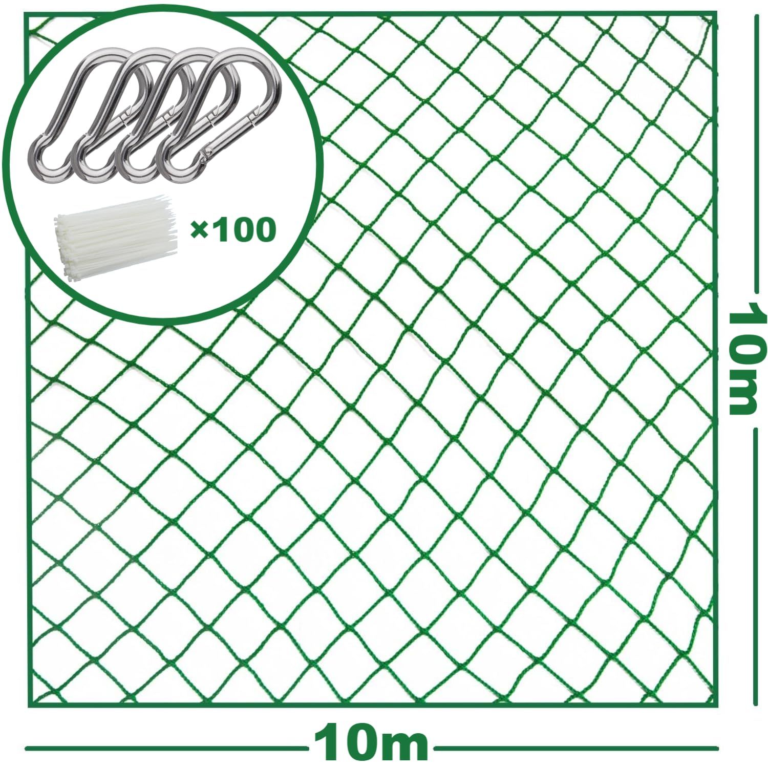 グリーンネット 10m×10m 25mm目 防鳥ネット 防獣ネット 多目的ネット 多用途ネット PP養生ネット 防球ネット 落下防止 荷崩れ防止 果樹用 PP素材 大型 丈夫 安全 汎用 固定用ロープ付き 設置簡単 収納バッグ付き