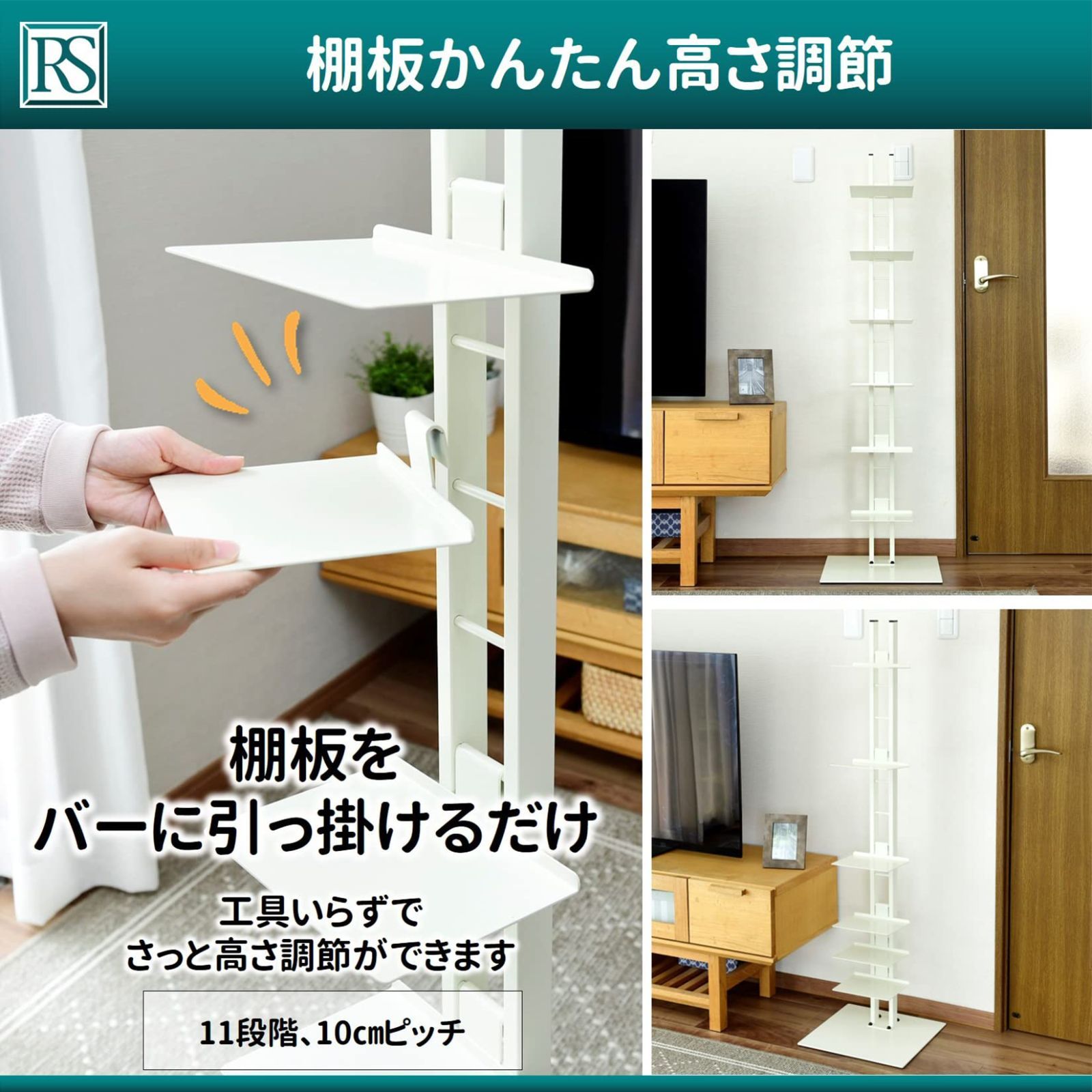 数量 幅35×奥行33×高さ130㎝ タワーシェルフシャトー 組立品 本を積んでいくだけ 6段 棚板かんたん高さ調節 ミルキーホワイト スリム 大容量 SHT-130 W 本棚 メーカー1年 ルネセイコウ
