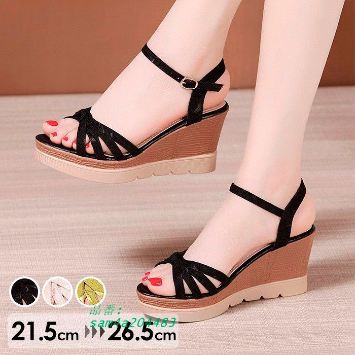 ウェッジソール サンダル 厚底 ウエッジソール 厚底サンダル レディース かかとあり ヒールサンダル アンクルストラップ ストライプサンダル 大きいサイズ 小さいサイズ 着心地よい おしゃれ 美脚 大人 可愛い 靴 女性 さんだる ブラック N1X0