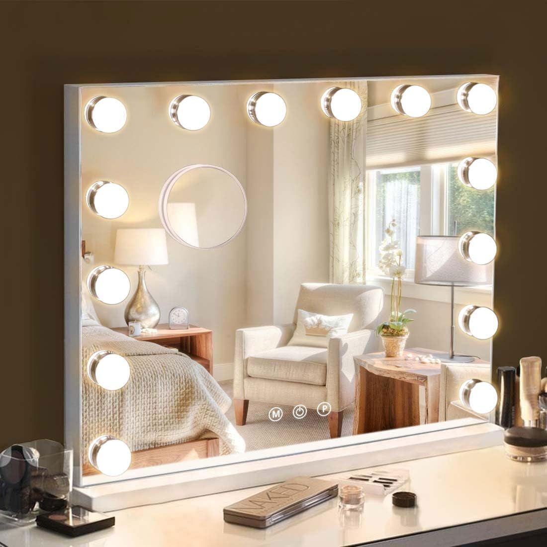 【3つのライトモードと明るさ調整】女優ミラーには14個の調光な電球があり、暖かい光、自然光、冷たい光に調整できます。