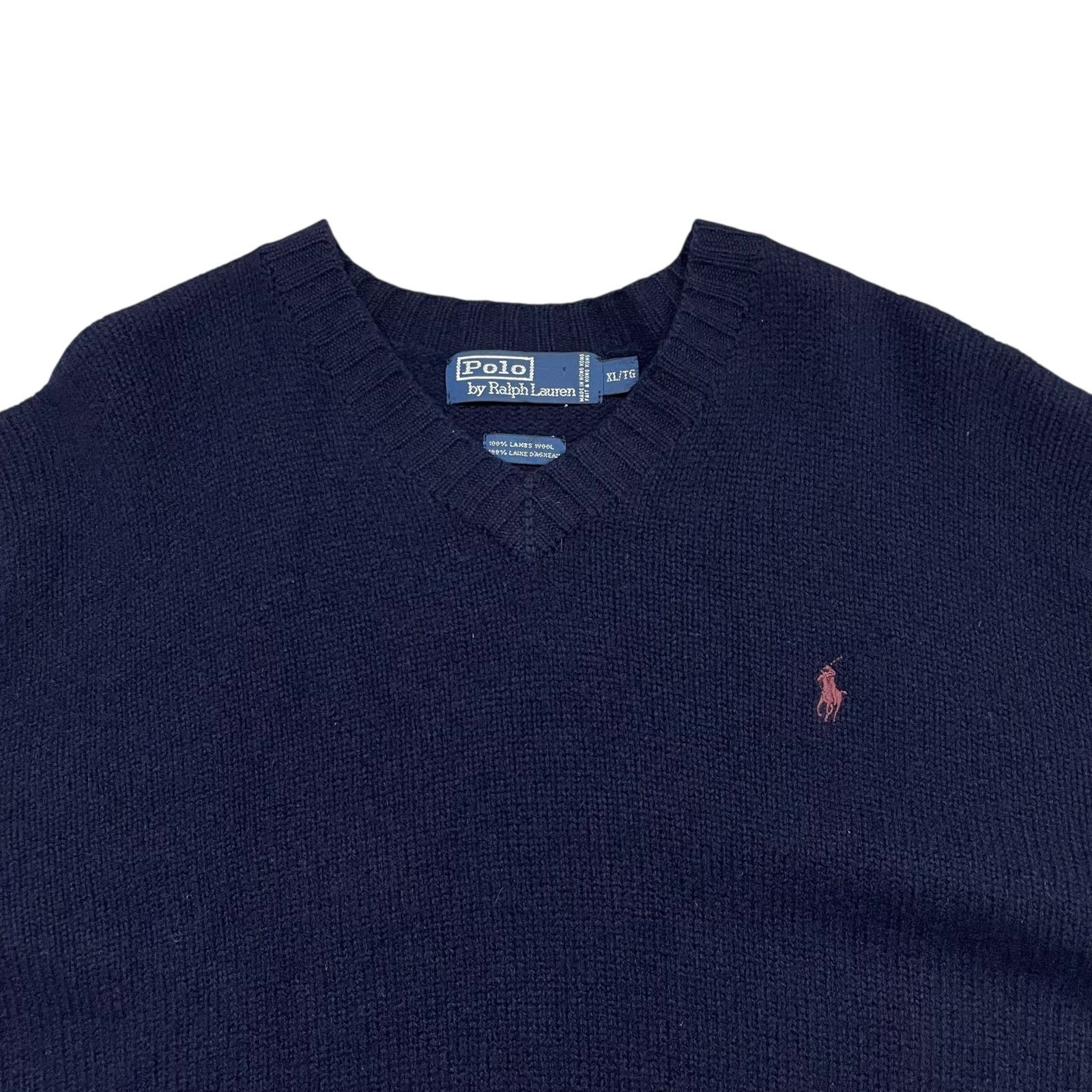 00 s ポロラルフローレン ウール ニット セーター Vネック ネイビー サイズ XL