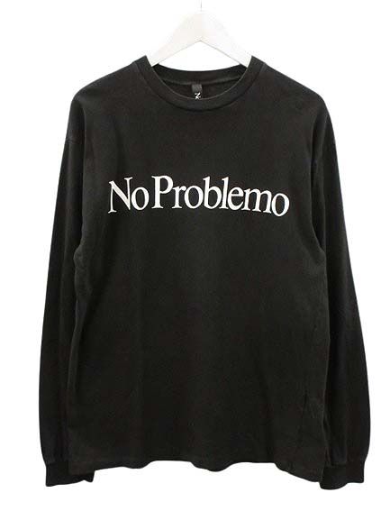 No Problemo ノープロブレモ ロンT ロゴTシャツ M 黒 ブラック クルーネック 長袖 カットソー プリント トップス
