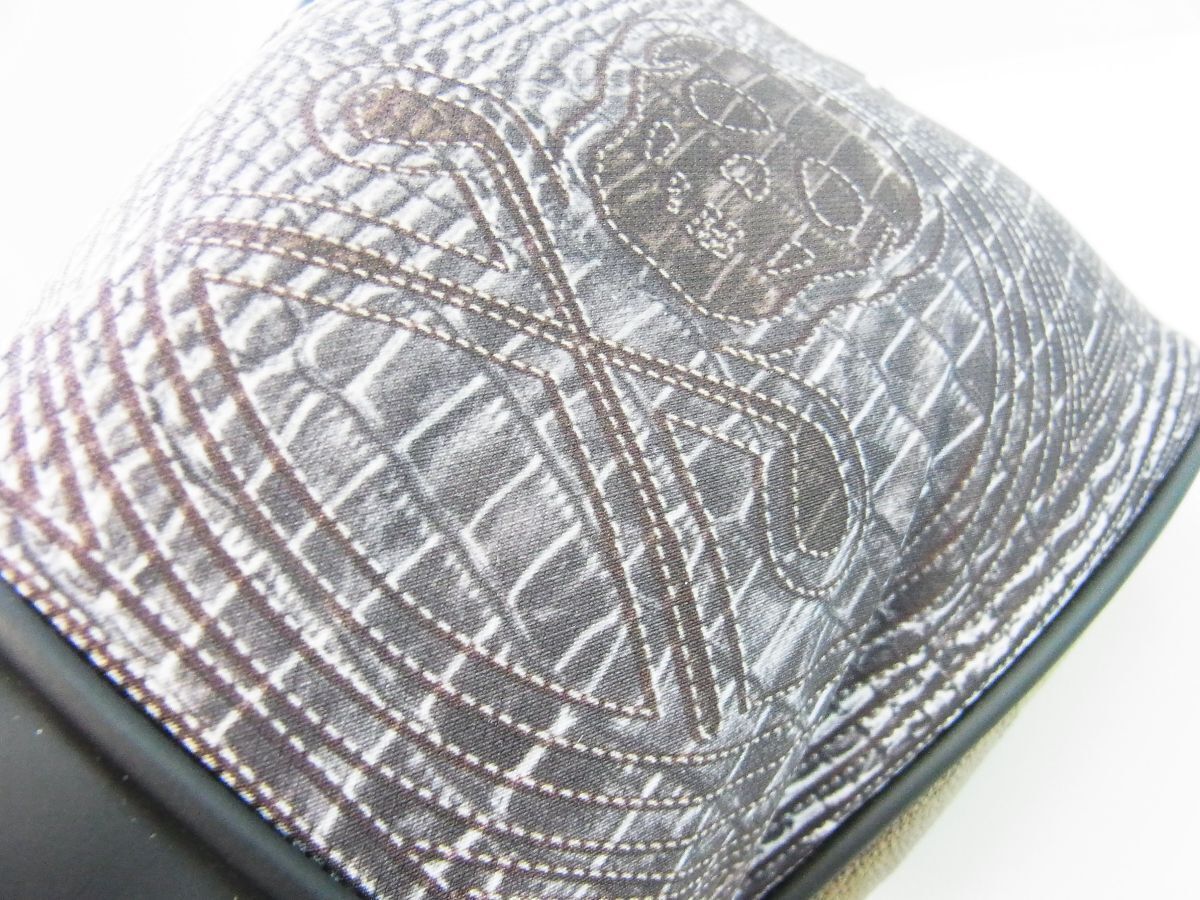 商品説明:高密度ナイロンをベースにプリントを施したドライバーヘッドカバー。クロコダイル柄をベースにブランドロゴやスカルをキルティングステッチで表現したスーパーリアルモノグラムパターンと、シグネチャーであるカモフラージュパターンをコラージュで再構築した2種類を展開。フロントには大きく存在感のあるサークルスカルプレートを配置。綿入りのコンパクトな立体フォルムで、ヘッドをしっかりガード。内側にはクラブヘッドを傷つけない、柔らかな起毛素材を使用。460ccまでのヘッドサイズに対応。