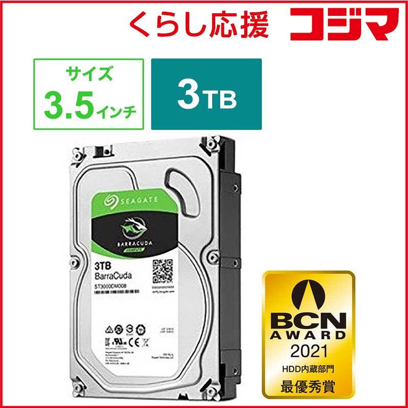 SEAGATE 内蔵HDD BarraCuda 3.5インチ 3 TB 「バルク品」