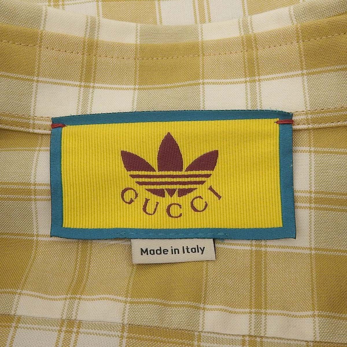 GUCCI グッチ アディダス コラボ チェックシャツ シャツ ブラウス アパレル トレフォイル GUCCI×adidas 39 15 ポリエステル イエロー黄 グリーン緑 ホワイト白 726087 メンズ アラモード