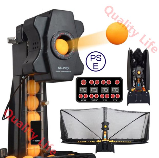 卓球練習ロボット S 6-PRO 卓球マシン 練習機 自動球出し機 器具 多スピン 無規則 7段階調整 連続打ち対応 300球収容 用ボール発射機 自宅の 実戦形式のトレーニングが 取り外し なネット PSE認証济