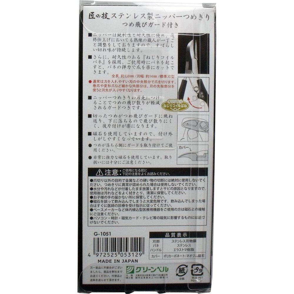 匠の技 ステンレス製 ニッパーつめきり つめ飛びガード付き G-1051