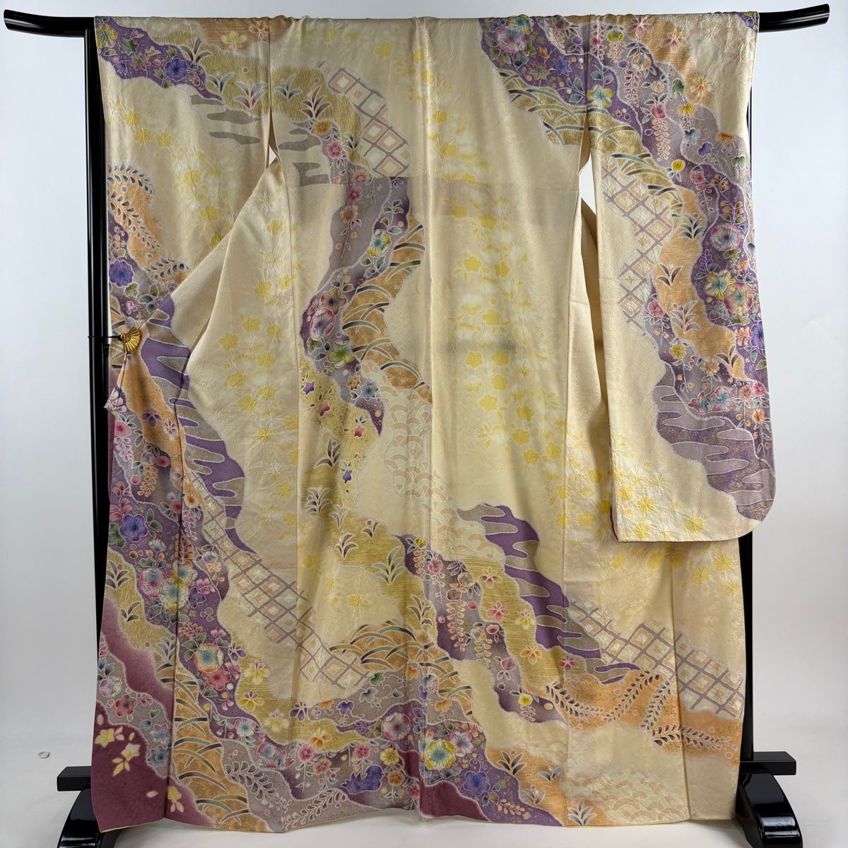 振袖 身丈167 cm 裄丈67.5 L 袷 草花 菱 金銀彩 絞り クリーム 正絹