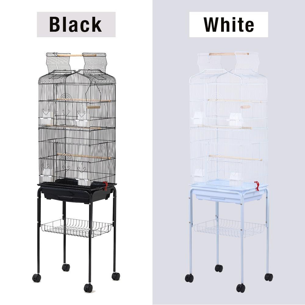鳥かご インコ 大型 スタンド付き (高さ163×幅46×奥行36cm) 持ち運び 鳥 ケージ バードゲージ 鳥小屋 引き出し式トレイ 止まり木 ブランコ 餌入れ 文鳥 セキセイインコ オカメインコ ボタンインコ コザクラインコ (ブラック)