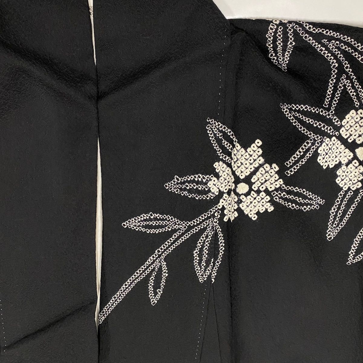 訪問着 身丈168 cm 裄丈66 M 袷 枝垂れ桜 絞り 黒 正絹