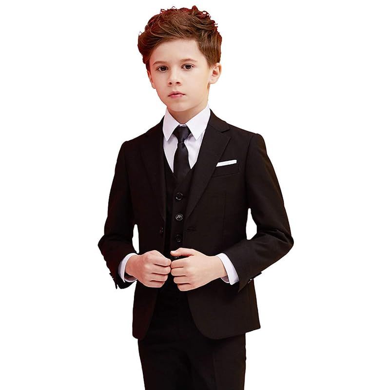Lubooent ーイズフォーマルスーツ 子供用スーツセット 子供服 男の子 子供正装 ジャケット シャツ ベスト ネクタイ 5点セット 入学式 卒業式 結婚式 七五三 160 ブラック