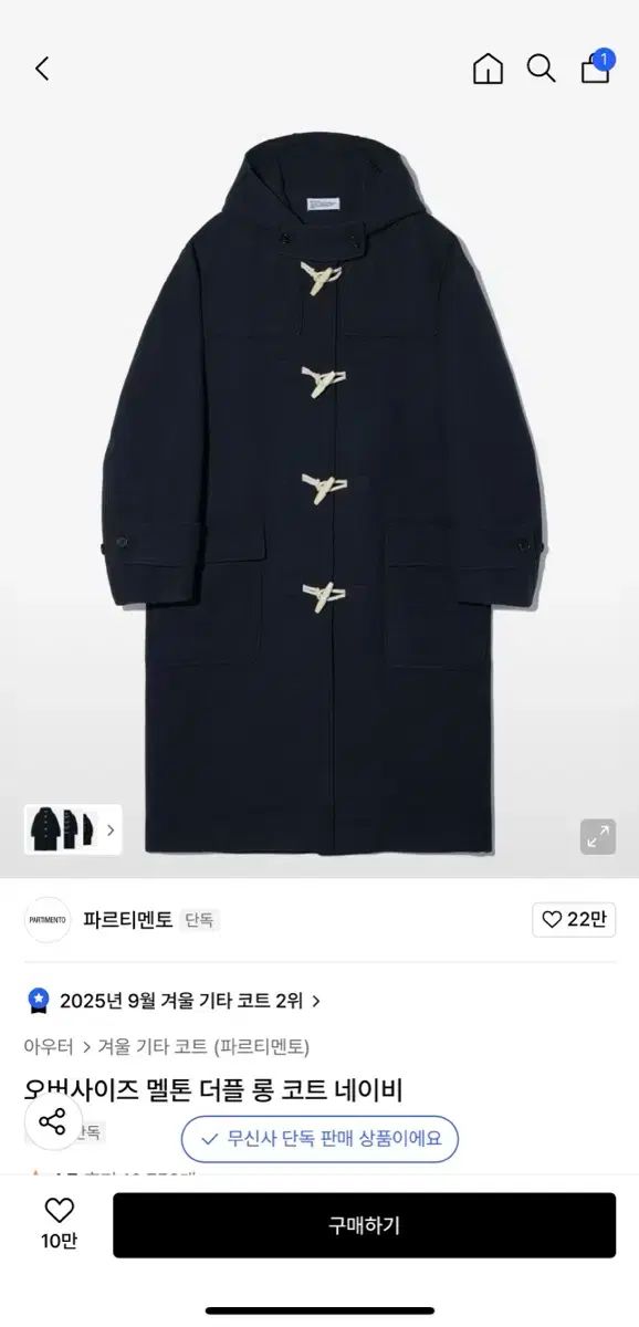 PARTIMENTO オーバーサイズ メルトン ダッフル ロング コート ネイビー L