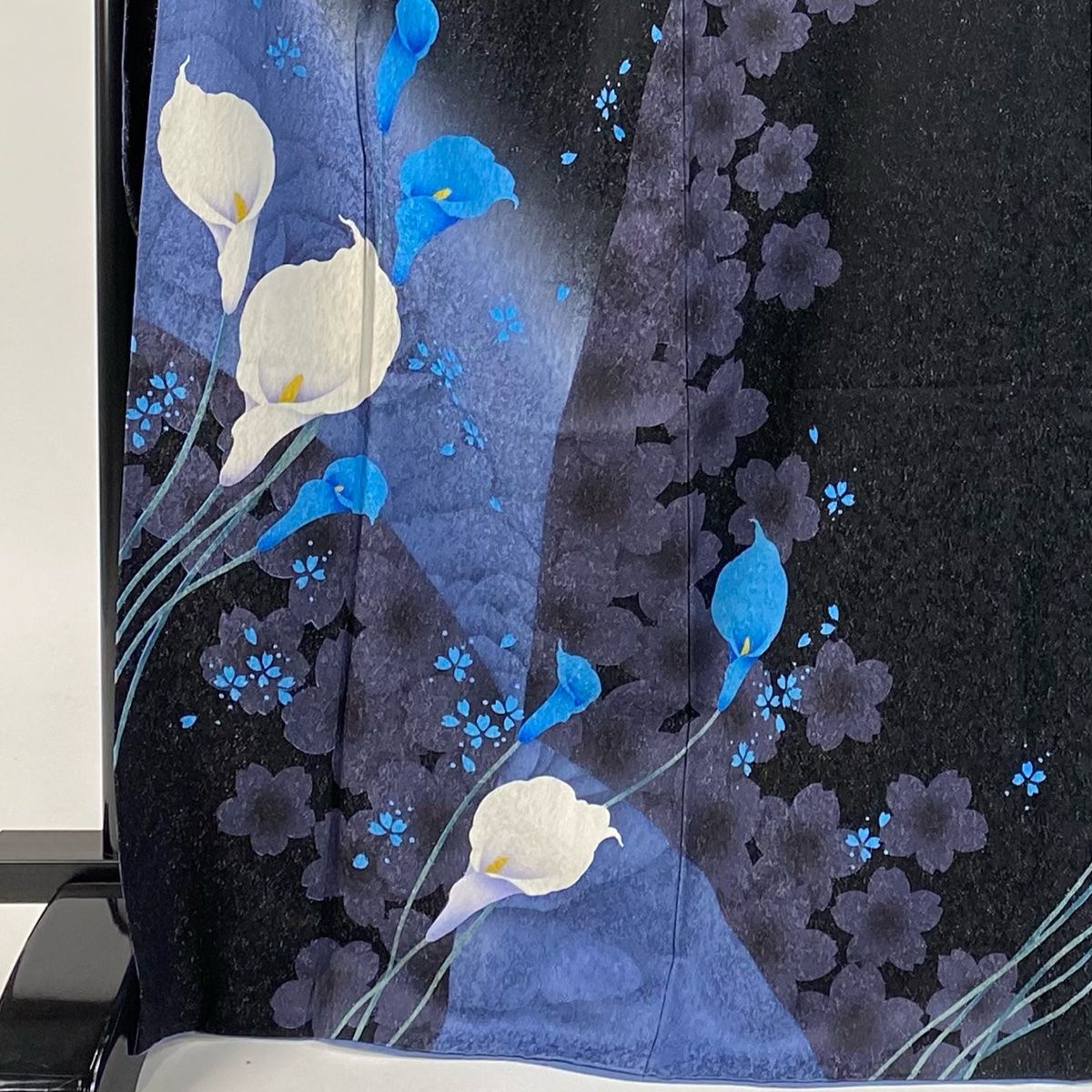 振袖 身丈169.5 cm 裄丈69.5 L 袷 桜 銀通し ぼかし 黒 正絹