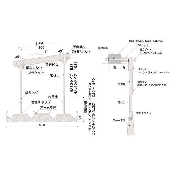 天井付型物干金具 DRY WAVE HA 50 THC ブラック 001
