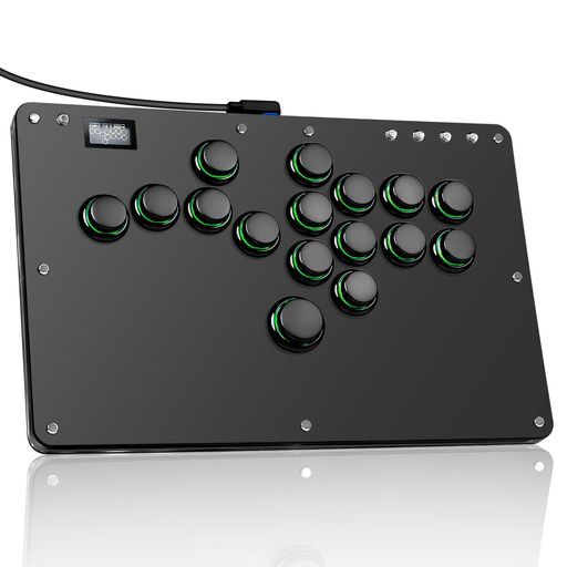 Haute 42アケコンレバーレスコントローラーレバーレスアケコンR 16黒 薄の厚さ天板広めForPCSwitch 2 SwitchPS 4 PS 3格ゲー向けボタンが外れ難いボタン枠の追加使い手向上膝置き可無遅延LED