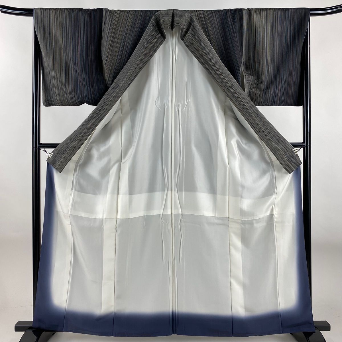 紬 身丈161.5 cm 裄丈67 M 袷 縦縞 黒灰 正絹