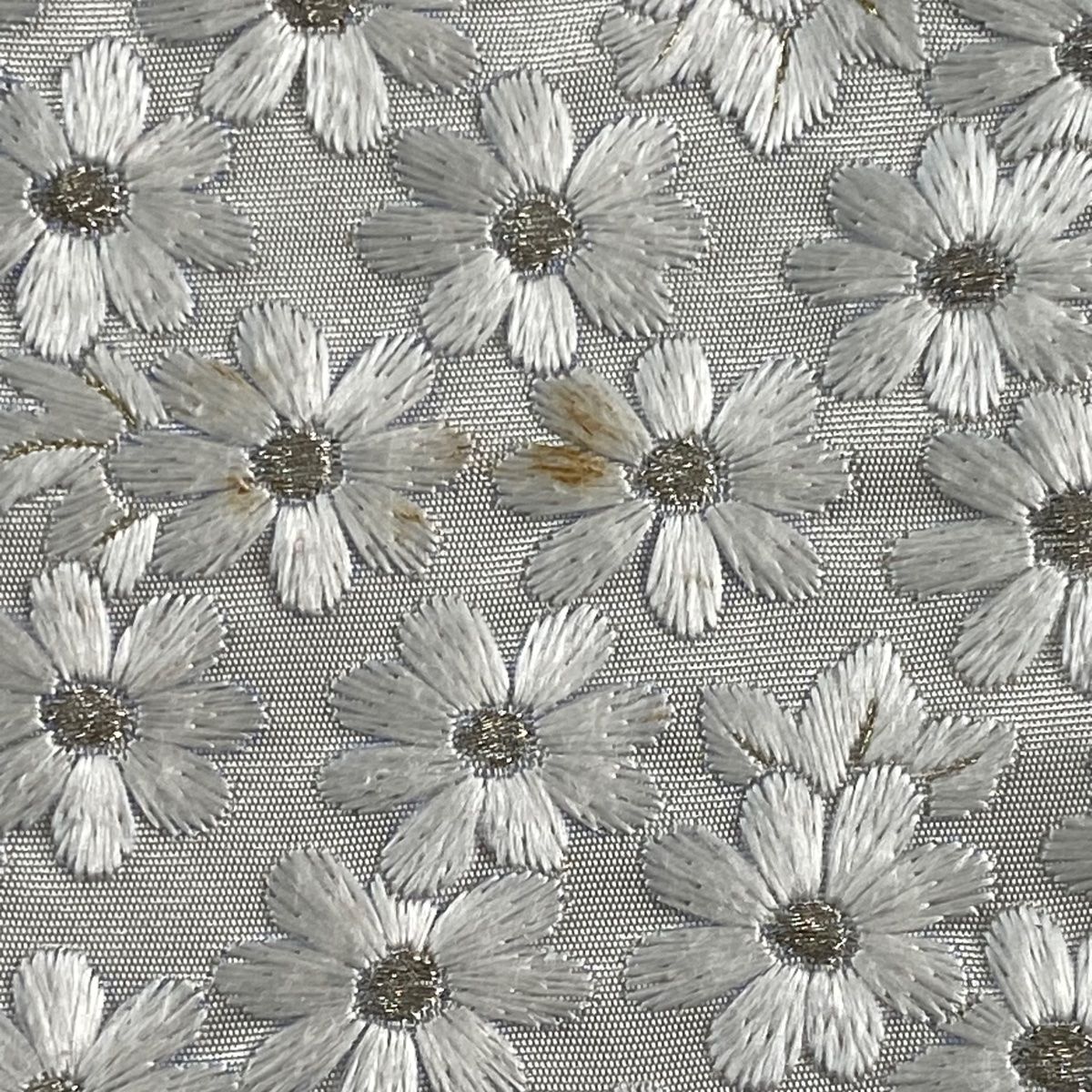 袋帯 花 金銀糸 箔 灰白 六通 正絹