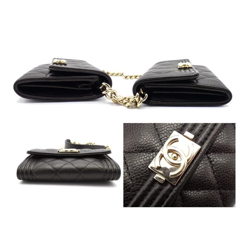 シャネル CHANEL ボーイ キャビアスキン チェーン ショルダー ウォレット バッグ 44810