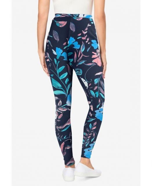 ウーマン ウィズイン レディース レギンス ボトムス Plus Size Tall Stretch Cotton Printed Pocket Legging Navy coral multi floral