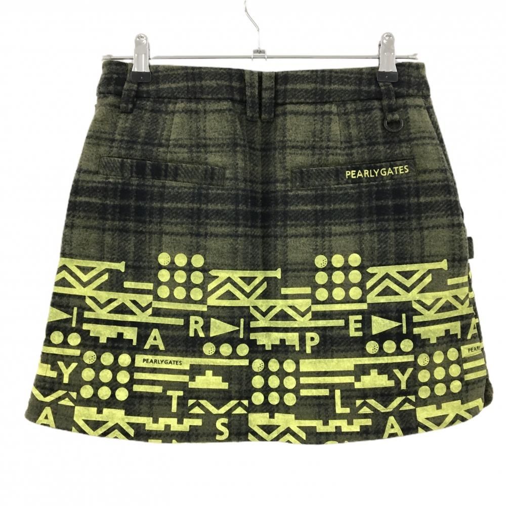 パーリーゲイツ スカート カーキ×イエロー チェック 表起毛 下部プリント レディース 0 S ゴルフウェア PEARLY GATES