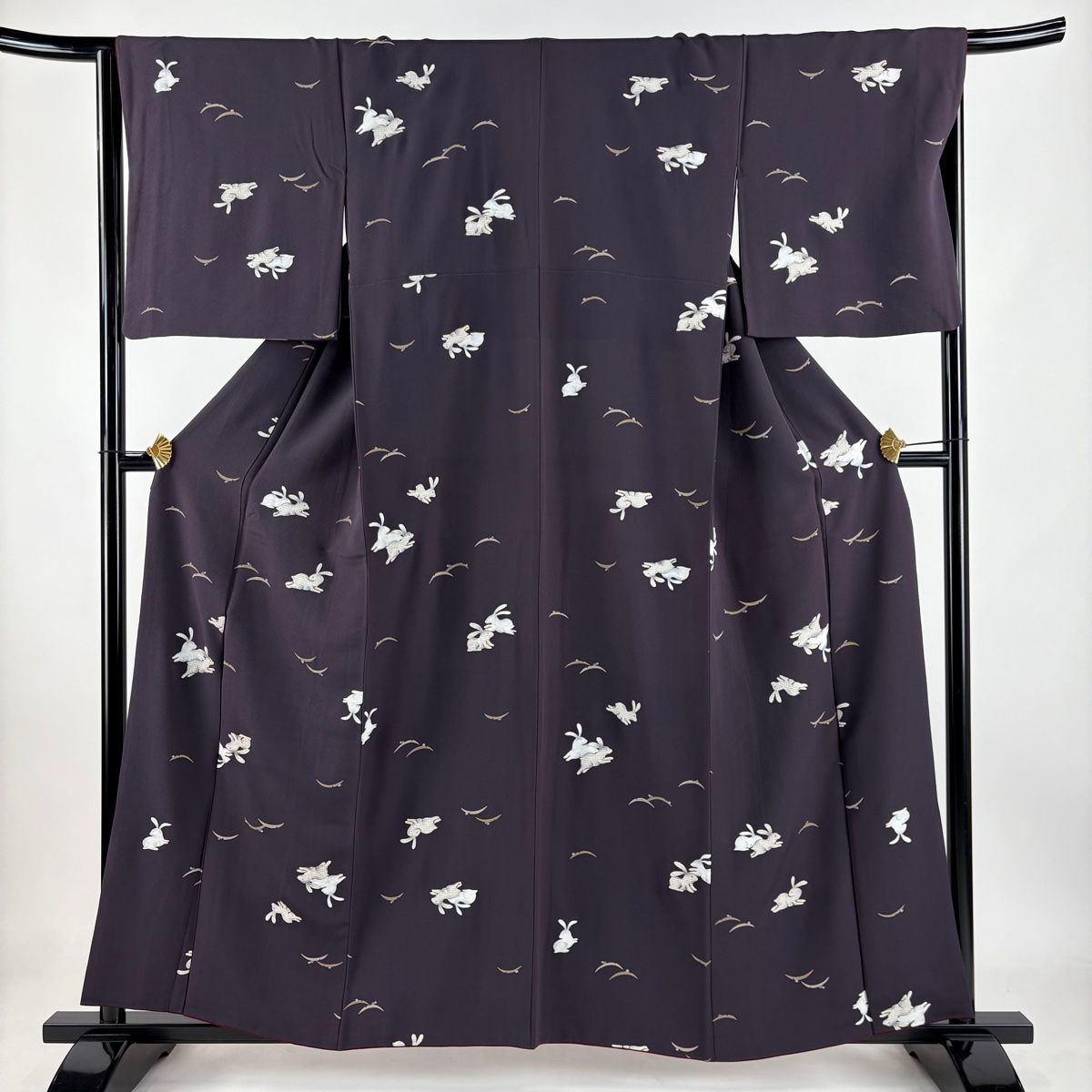 小紋 身丈158 cm 裄丈65 M 袷 やまと うさぎ 露芝 金糸 ぼかし 濃紫 正絹
