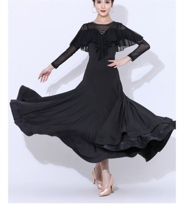 社交ダンスドレス 社交ダンス モダンドレス 大きいサイズ 長袖 大きい裾 ドレス ワルツダンス ダンスウェア ステージ衣装 競技会 ダンスパーティー 発表会 競技着 練習着 舞台 演奏会 演出