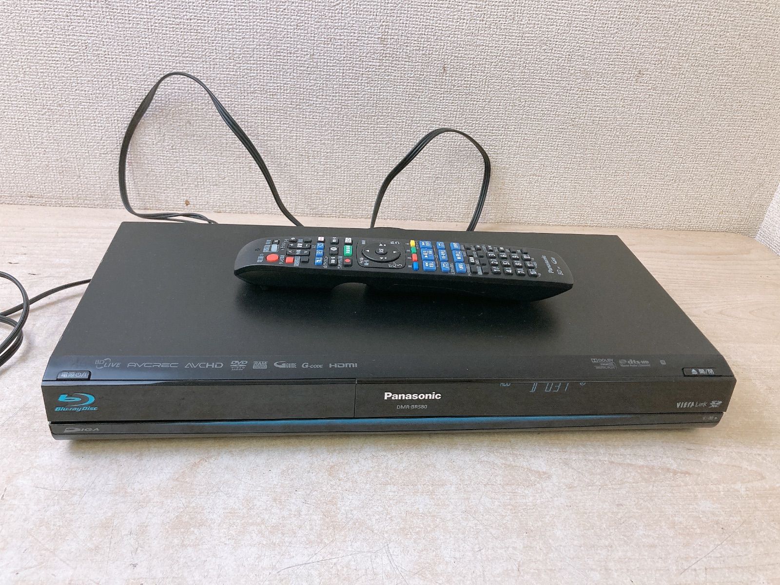 パナソニック 2010年製 ブルーレイディスクレコーダー DMR-BR580 リモコン付き パナソニック 100V 50/60Hz 22W 中国製