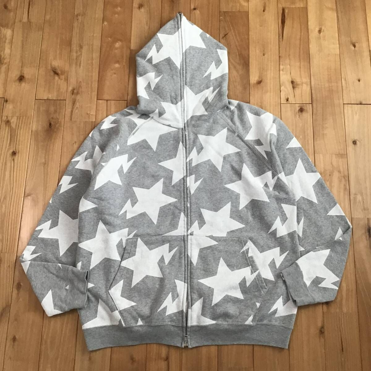 a bathing ape BAPE スター フルジップパーカー グレー × ホワイト Lサイズ です★