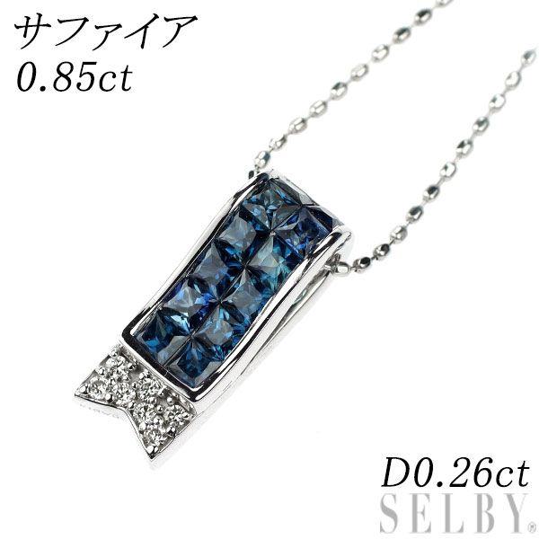 トータル0.85ctのサファイアをメインに飾った、ホワイトゴールドのペンダントネックレスです。