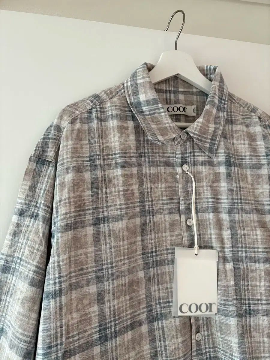 coor クアー マドラスチェック チェック オーバーサイズ シャツ サーモンブルーグレー サイズ xl