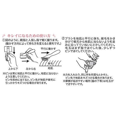 商品紹介 短い毛のワンちゃんネコちゃんに! 皮膚にやさしい先丸コーティングで、しっかり抜け毛ともつれ取り。 使用上の注意 ●ブラシの汚れは他のブラシやクシ等で取り除いてください。●使用後はいつも清潔に保ってください。汚れは乾いた布等でふき取ってください。水気があるとステンレス部がサビる原因となります。●熱湯やベンジン・シンナー・アルコール等は使用しないでください。変色・変形する場合があります。●直射日光・高温多湿の場所をさけて保管してください。 原材料・成分 本体・ピン:ステンレス、柄:天然木 使用方法 1図のように、親指と人指し指で軽く握ります。(動かす方向によって持ち方を変えると便利です。)2ブラシを地肌と平行に保ち、もつれ毛をほぐした後、表面から毛の流れに沿ってゆっくりブラッシングします。皮膚や被毛を傷つけないために無理に引っ張らないようにしましょう。 ご注意(免責)>必ずお読みください ●犬・猫のお手入れ以外の用途には使用しないでください。●皮膚に異常がある場合には、使用しないでください。症状を悪化させる恐れがあります。●目・耳・口・肛門周辺のお手入れは各部に直接ふれないように注意してください。●ペットの皮膚や被毛を傷つけたり、商品の破損につながりますので、無理な力で使用しないでください。●子供が使用する場合は、大人が立ち会ってください。●破損する恐れがありますので、落とさないように注意してください。●火気や水気のそばでの使用や保管はしないでください。●幼児・子供・ペットのふれない所に保管してください。