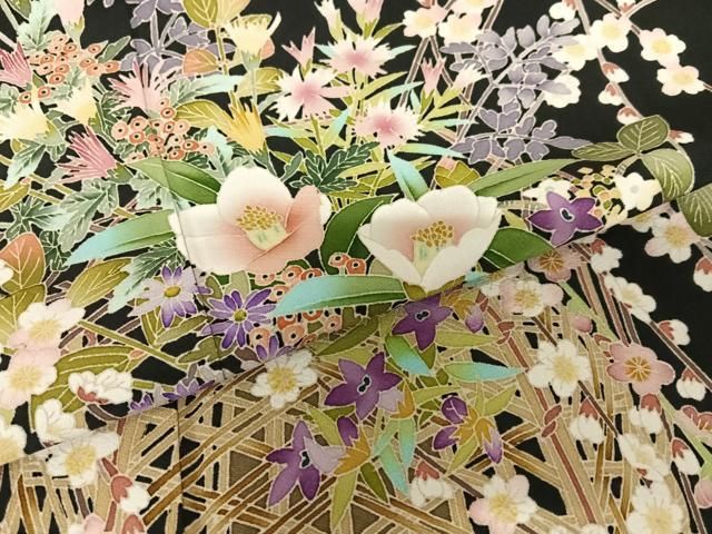 平和屋着物 本加賀友禅作家 茶谷孝志 黒留袖 花篭文 正絹 zg