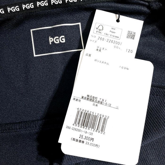 PGG by PEARLY GATES ピージージー パーリーゲイツ ゴルフ 日本製 吸水速乾 ニットデニム ツイル調 ロゴパイピング ダブルジップ 長袖 カットソー ライトアウター ゴルフウェア 268-2262001 定価2.5万 ネイビー ▲028▼50926w12