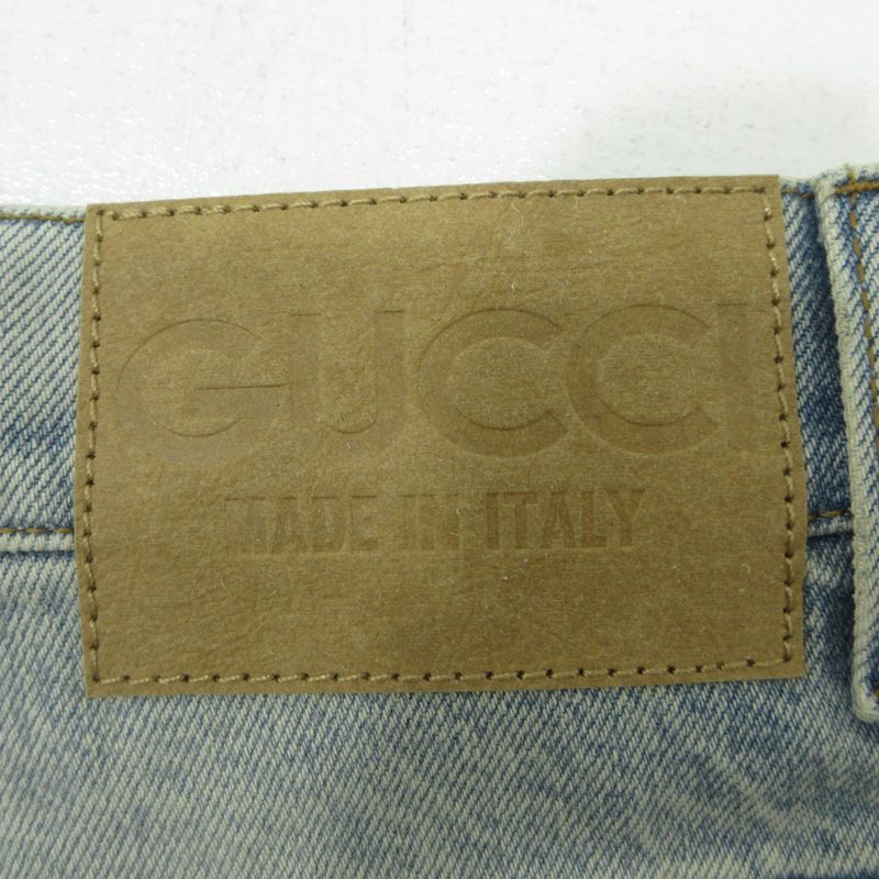 GUCCI グッチ ターンアップウォッシュドデニムパンツ CGモノグラム 裾ロゴジップフライデニムパンツ 774078 XDCTN ブルー インディゴ サイズ 30 135