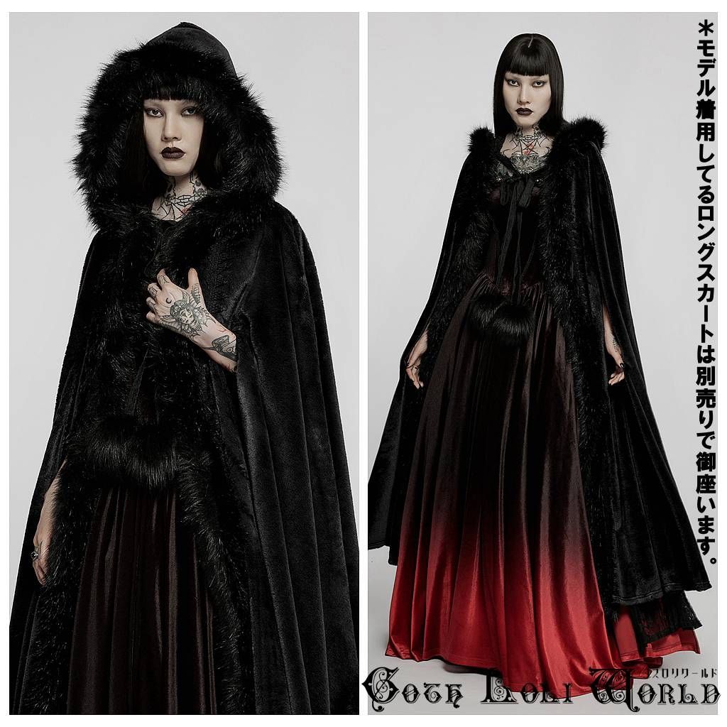 ロングファーフード付マントコート 黒色 WY-1423 BK