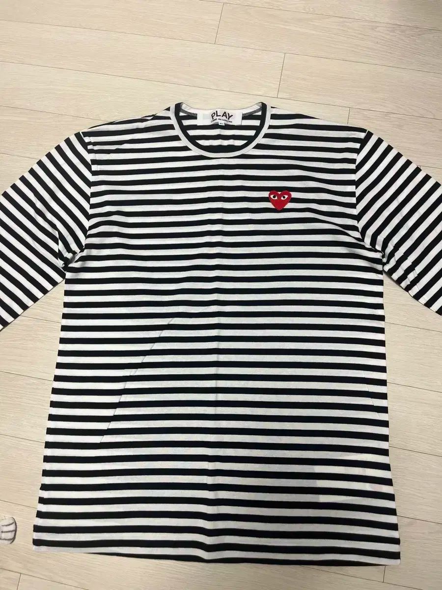 日本 タグない コム デ ギャルソン ブラック ストライプ レッドワッペン 長袖Tシャツ X