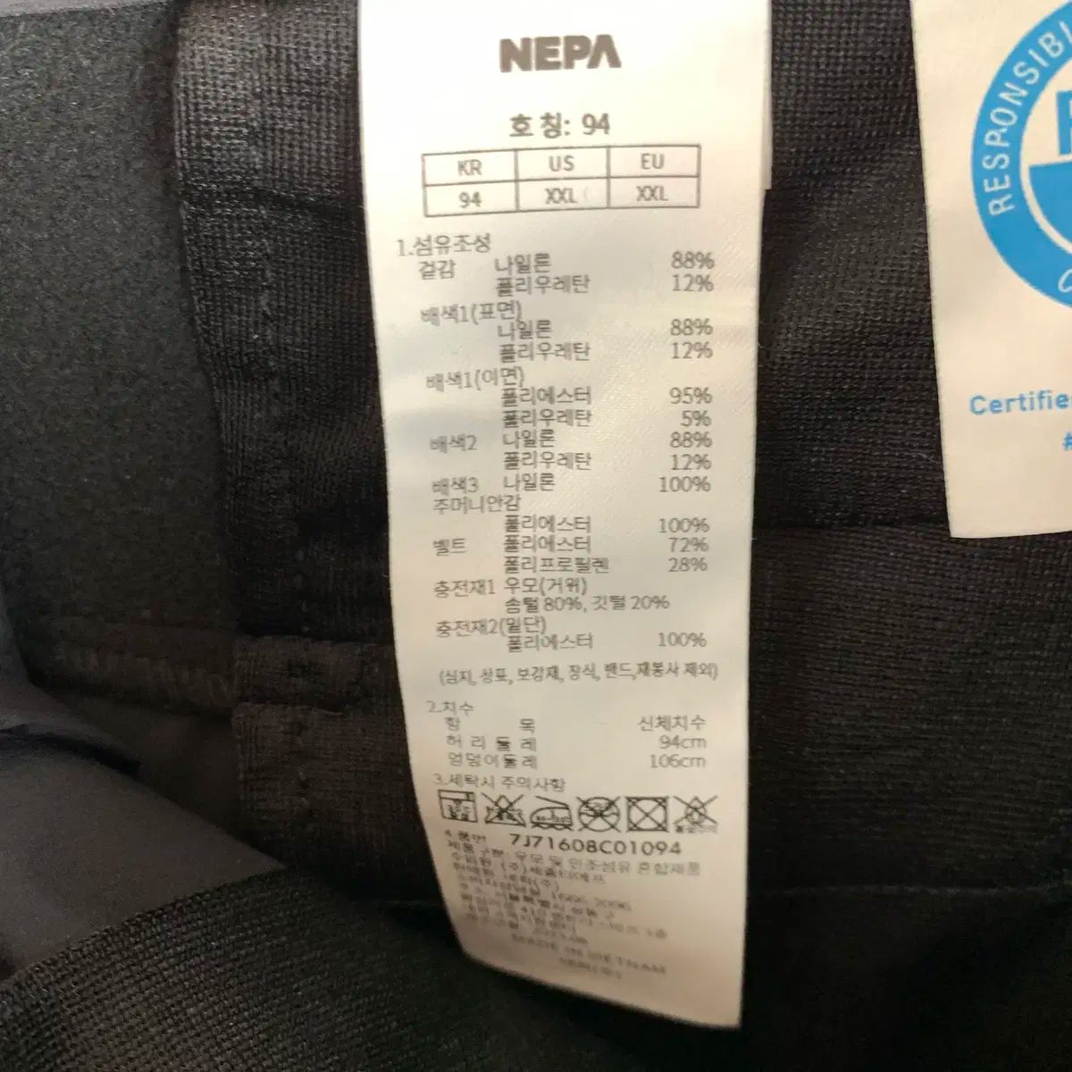 NEPA グースダウン ブラック ダウン ズボン 37 251105