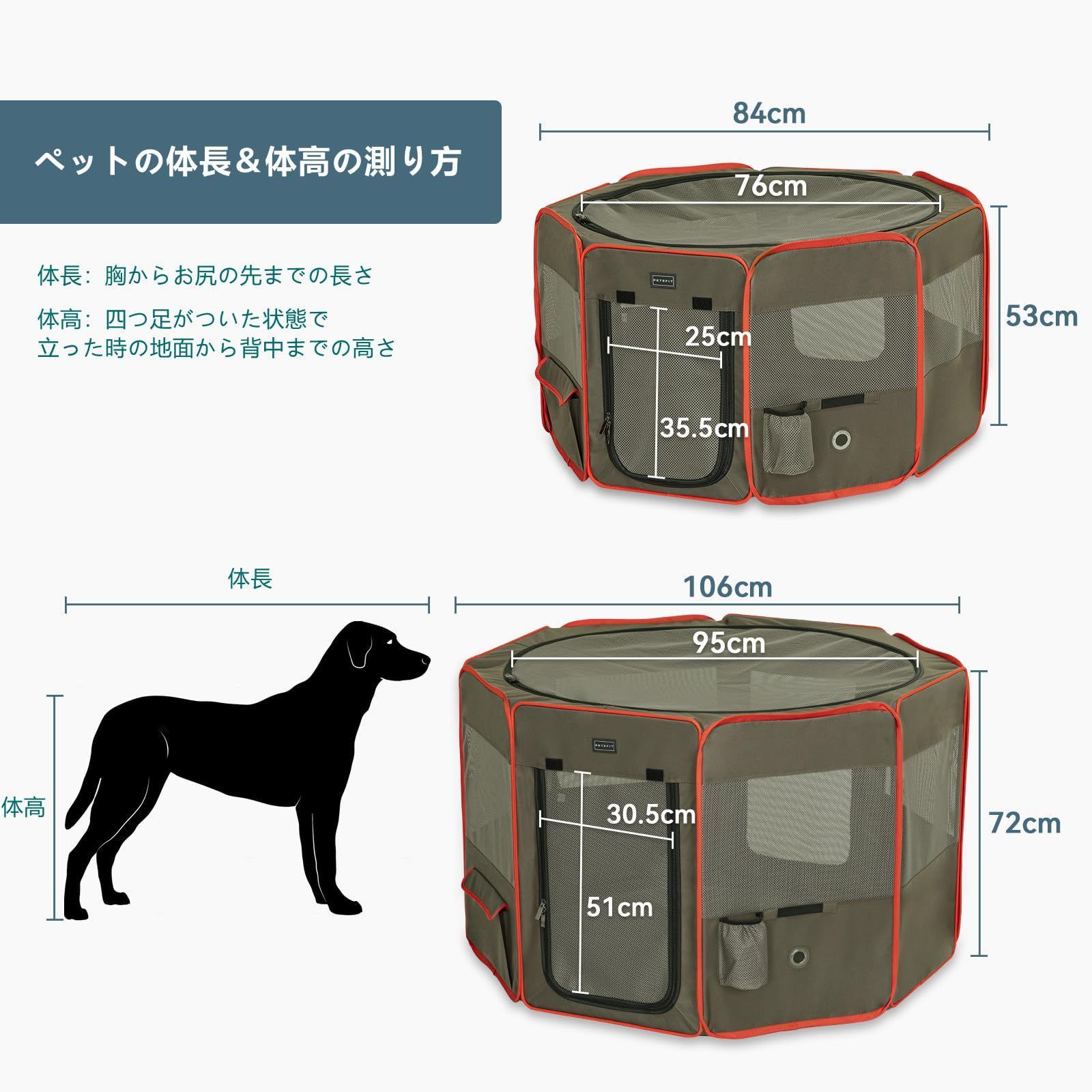 Petsfit 犬 サークル ペットサークル 八角形 ドッグハウス パッと開いて 猫の産屋 猫の分娩室 折りたたみ 犬猫兼用 メッシュ 屋根付き 軽量 収納バッグ付き 部屋のインテリアに馴染み キャンプ アウトドア お出かけ用品 中小