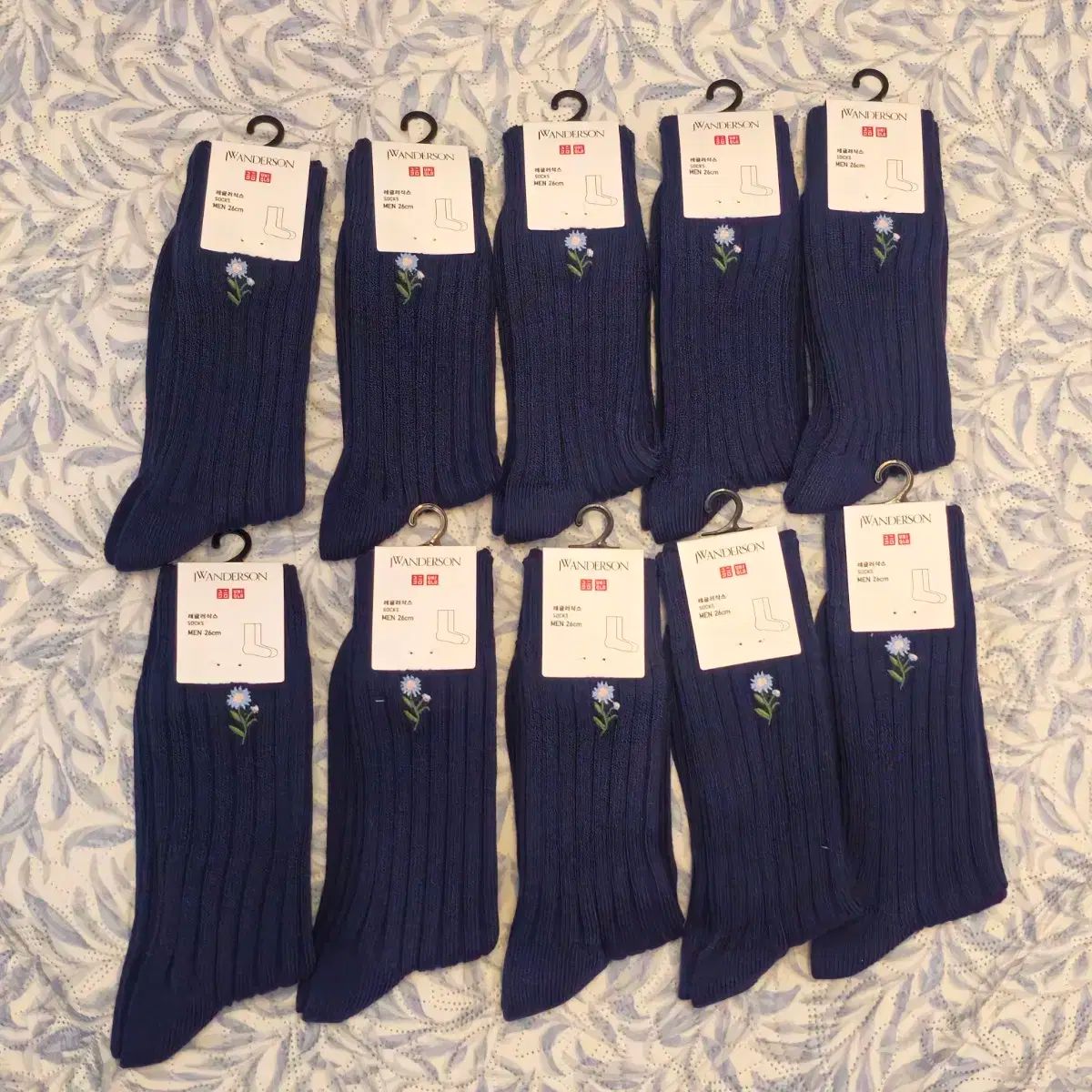 UNIQLO JW Kinloch Anderson キンロックアンダーソン リップソックス 花刺繍 メンズ 靴下 ネイビー