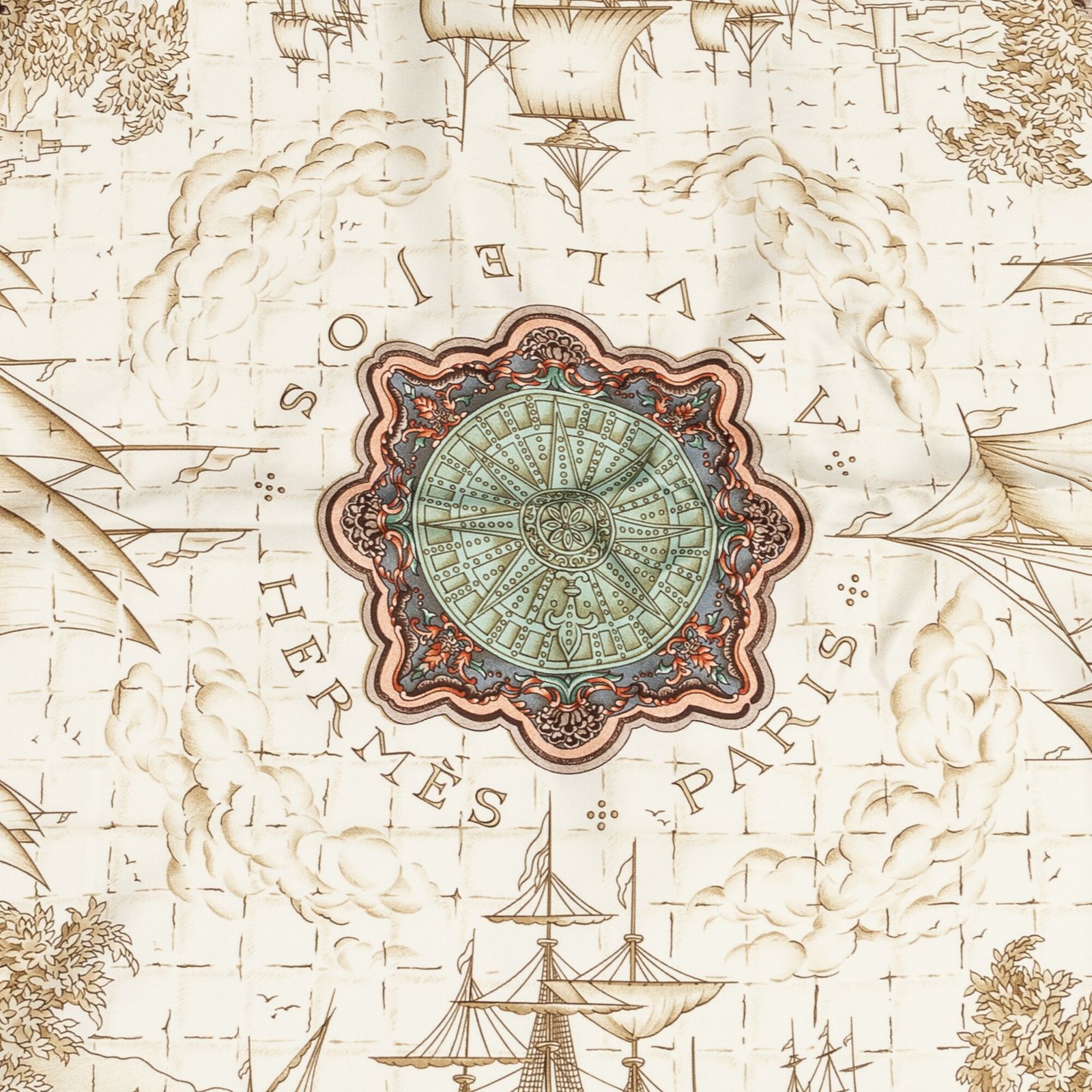 HERMES エルメススカーフベージュ ダークグリーン グレー ツイルシルクA