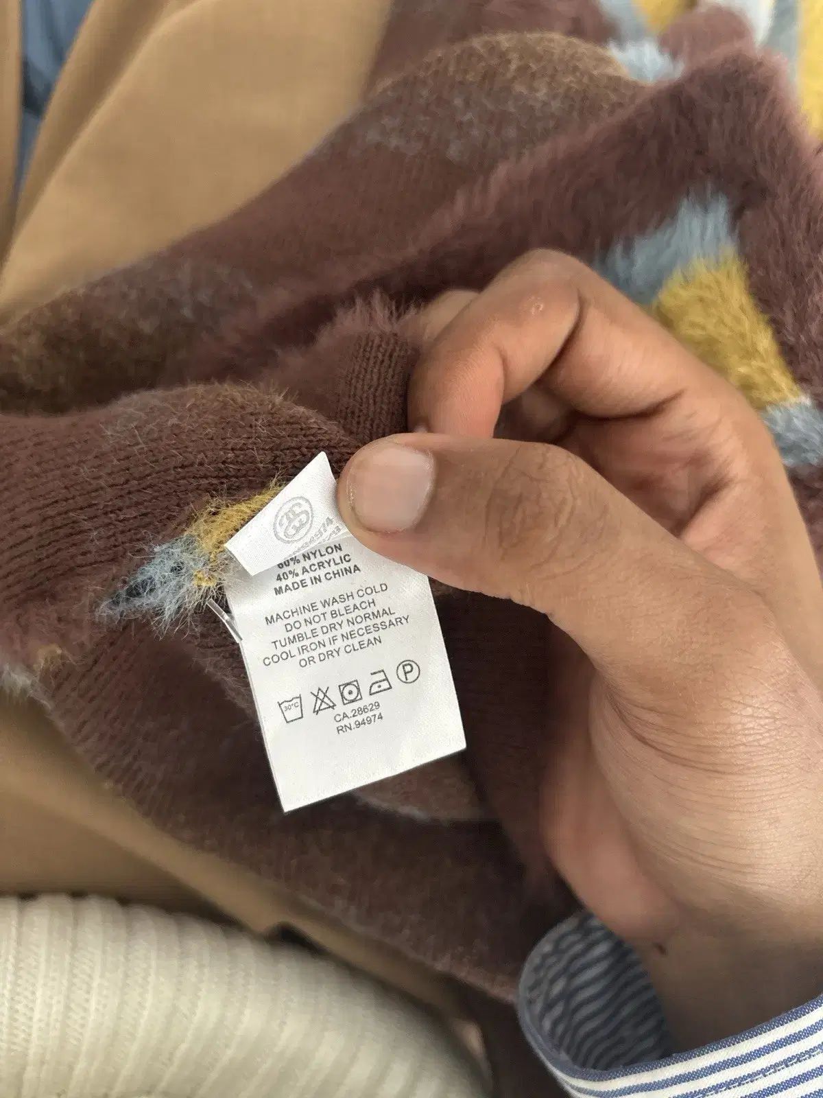 STUSSY 쉐기 ストライプ カーディガン ブラウン