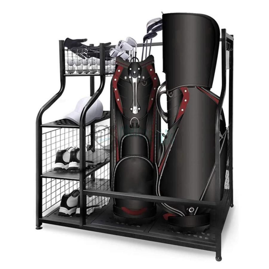 ゴルフバッグ収納ラック、大容量設計、2つの標準ゴルフバッグを収納できます。