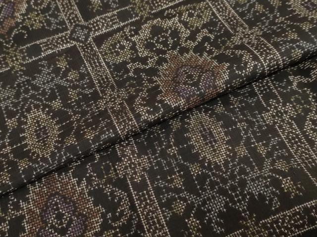 平和屋着物 本場大島紬 7マルキ 洋花格子文 正絹 ud