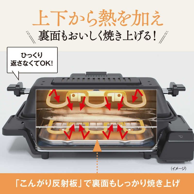 ・こんがり反射板があることで、水の蒸発量を減らし、魚をおいしく焼き上げます。