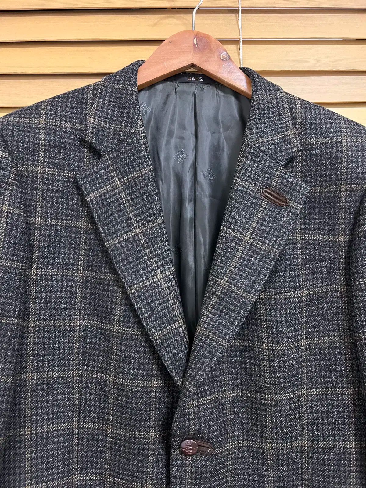 Dax メンズカーキブラウンチェックウールカシミヤジャケット